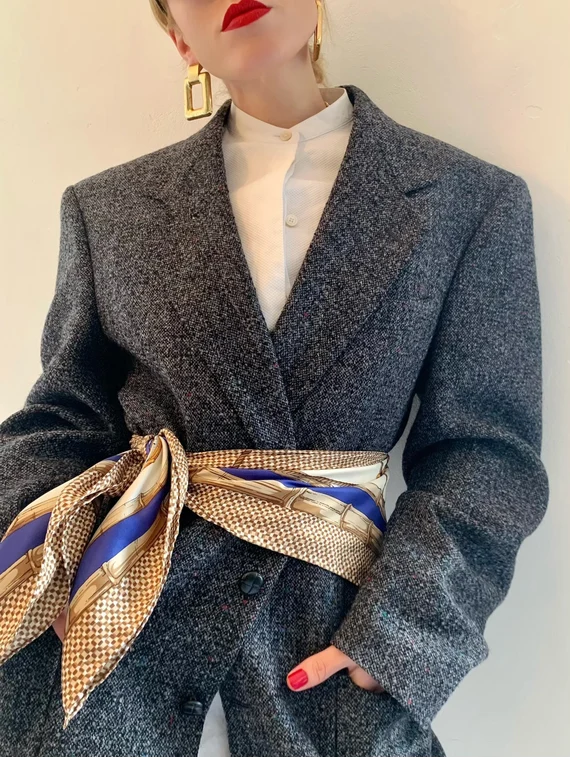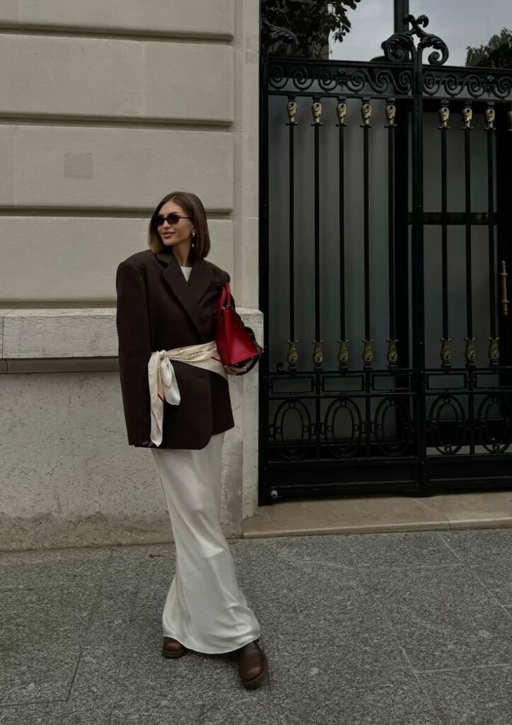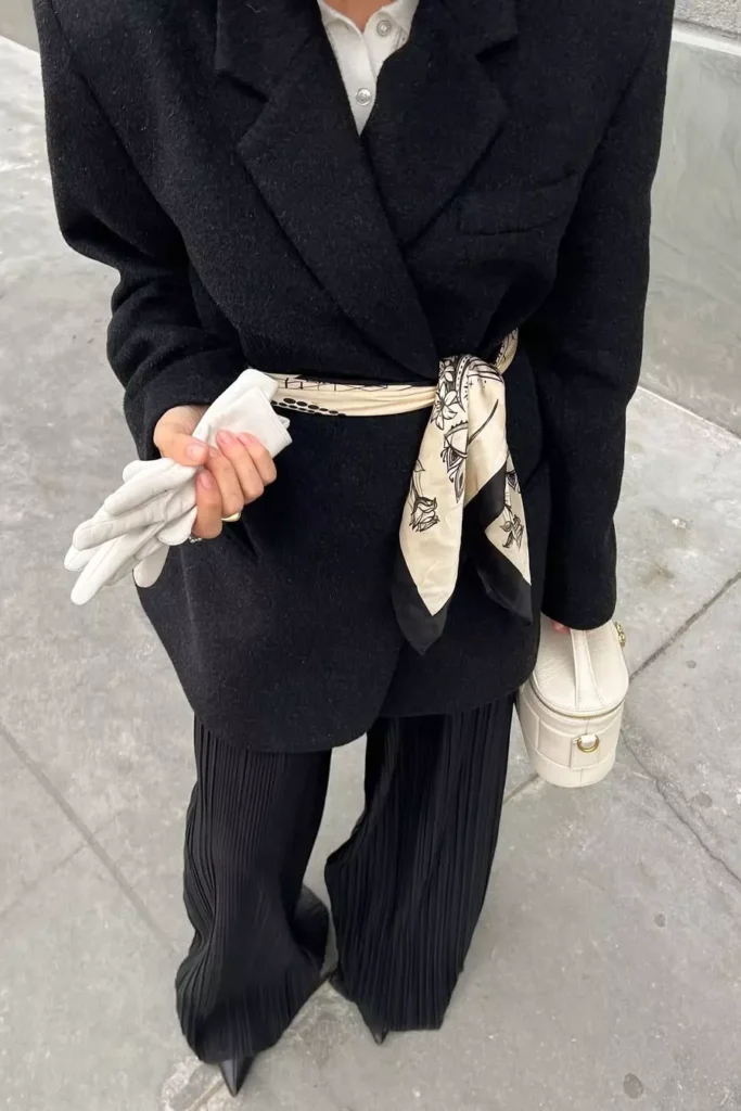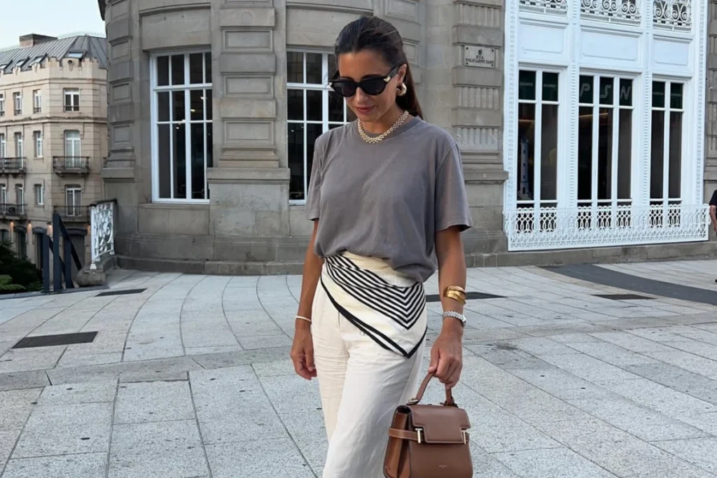 Esta tendencia sutil pero poderosa redefine los accesorios de temporada. Los pañuelos anudados en la cintura reemplazan al cinturón tradicional, aportando un toque artístico y bohemio. Se llevan sobre faldas, pantalones o vestidos, en seda o satín, con estampados delicados o vibrantes. Es el detalle inesperado que transforma cualquier conjunto en una declaración de estilo.