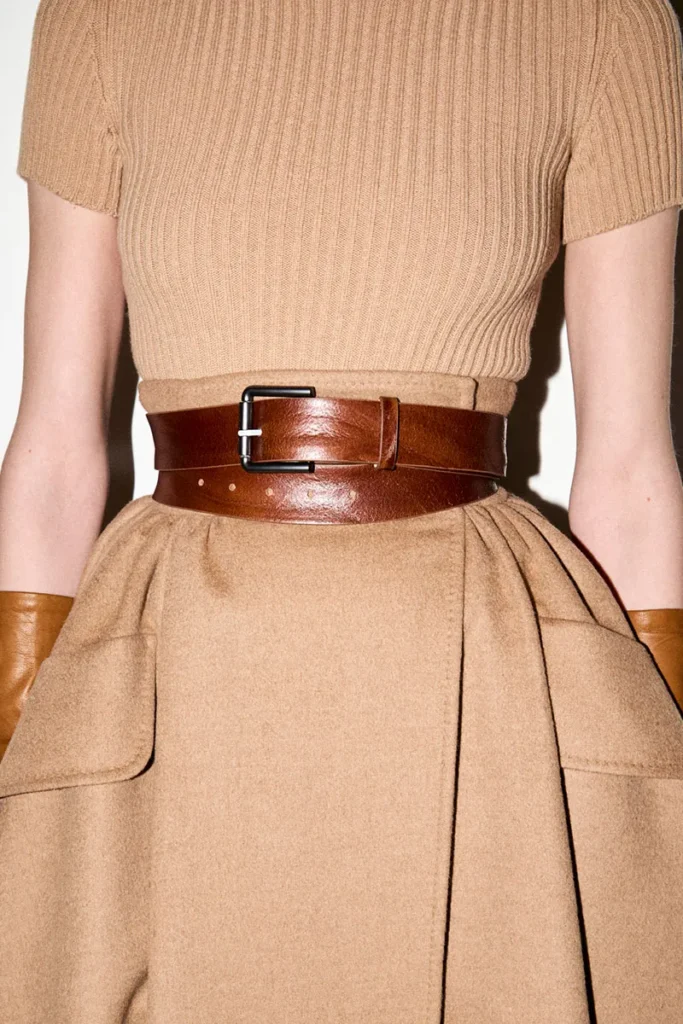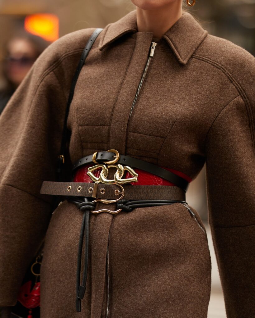 Una de las apuestas más fuertes del otoño es volver a enmarcar la silueta con fuerza. Los cinturones se llevan grandes, visibles y con mucha personalidad, pero también se renuevan con una tendencia inesperada: llevar varios a la vez. Superpuestos, dentro de la misma gama tonal pero en distintas texturas y grosores, crean un efecto visual impactante y sofisticado. Los veremos sobre blazers oversized, vestidos fluidos y abrigos de lana estructurados.